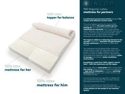 The answer is just as simple: add a latex topper on top. It balances the surface, closes the gap, and delivers a seamless, shared comfort experience – so both of you sleep well, each with your own comfort zone and perfectly tailored support.