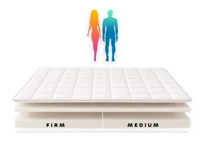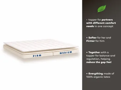 The answer is just as simple: add a latex topper on top. It balances the surface, closes the gap, and delivers a seamless, shared comfort experience – so both of you sleep well, each with your own comfort zone and perfectly tailored support.