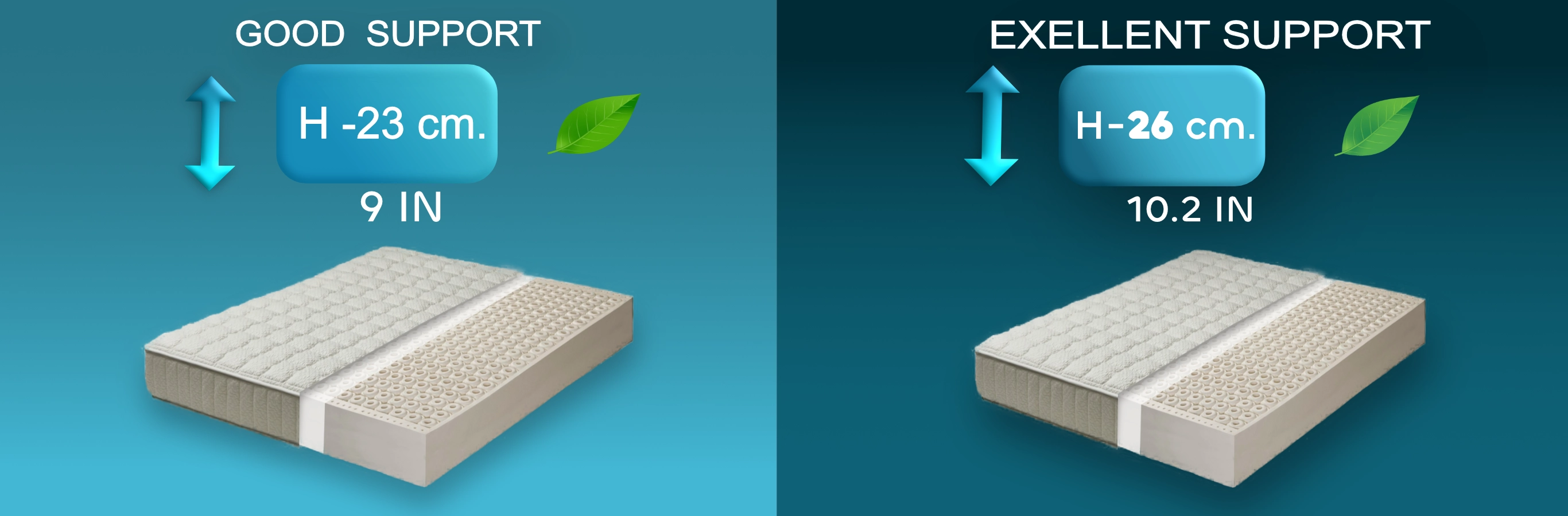 Suitable for all sleeping positions — side, back, or stomach — Bio Comfort supports the skeletal system without sinking like memory foam. It holds your body on the surface, adjusting instantly to your movements and weight, maintaining proper posture throughout the night.
